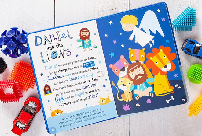 Set sail with Noah, follow Moses through the Red Sea, and marvel at Jesus’ miracles as you read this fun collection of Bible stories. Enjoy the sweet rhymes, then follow the Scripture to talk, question, and explore even more! SPECIAL FEATURES • Awesome shiny blue board book helps young children learn the stories of the Bible • Adorable illustrations bring the stories to life • Padded vinyl board cover and thick board pages are easy for little hands to hold Features: hardcover, 28 pages.